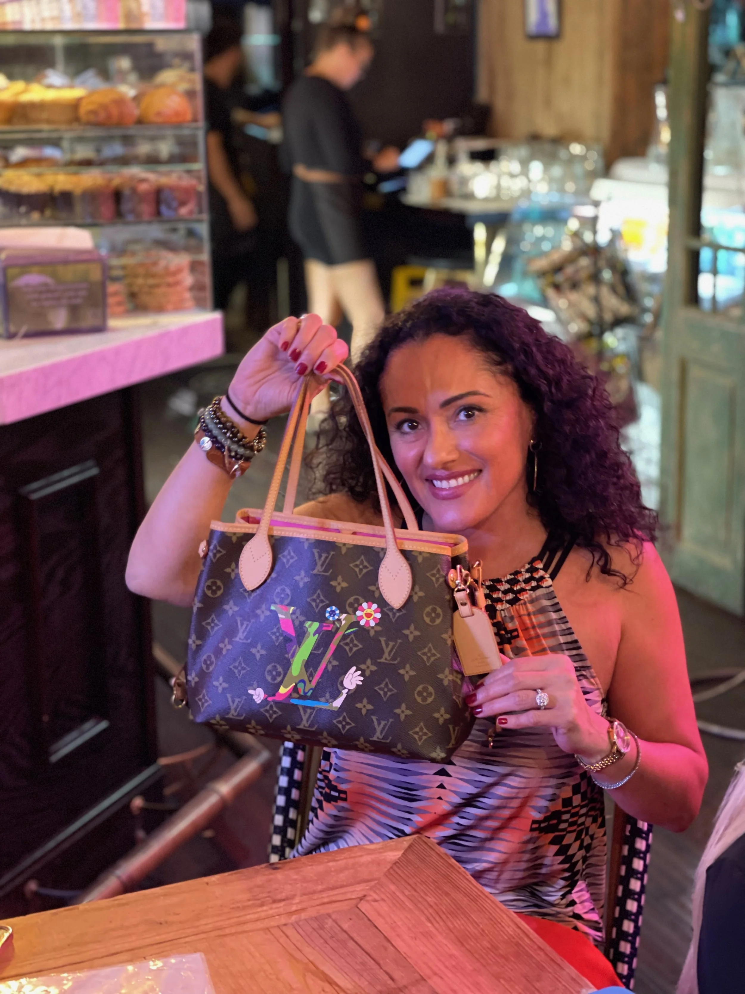 Roxanne Zinn member for how many years? Roxanne brought the new purse that she won at our Fall Party Like a Rockstar event. It was a pleasure to see this very special auction item donated by the NSU Art Museum in use.